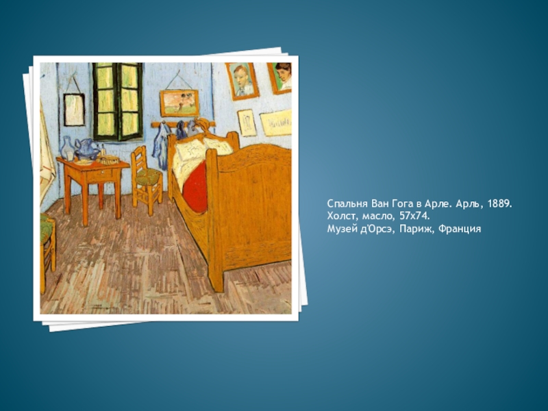 Слайд 22Спальня Ван Гога в Арле. Арль, 1889. Холст, масло, 57х74.