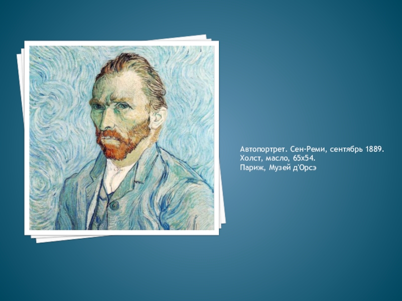 Слайд 13Автопортрет. Сен-Реми, сентябрь 1889. Холст, масло, 65х54.