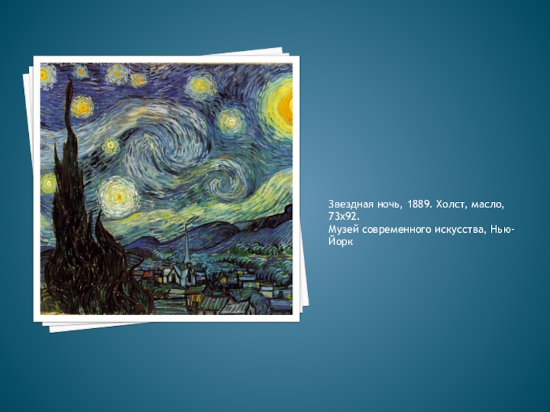 Слайд 3Звездная ночь, 1889. Холст, масло, 73х92.