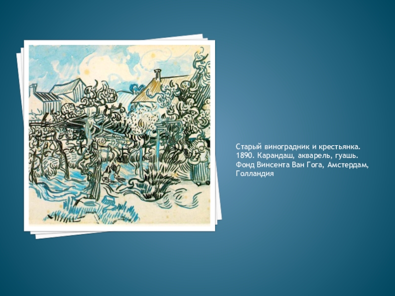 Слайд 20Старый виноградник и крестьянка. 1890. Карандаш, акварель, гуашь.