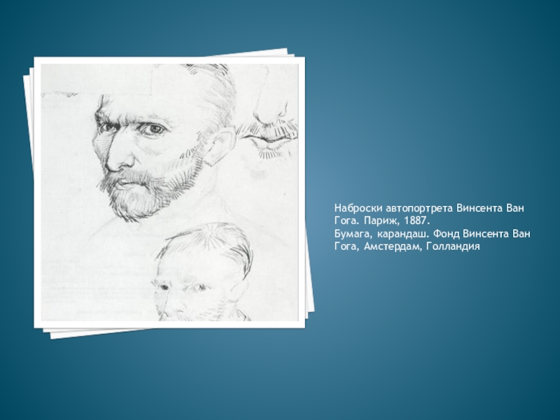 Слайд 18Наброски автопортрета Винсента Ван Гога. Париж, 1887.