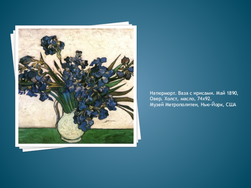 Слайд 23Натюрморт. Ваза с ирисами. Май 1890, Овер. Холст, масло, 74х92.