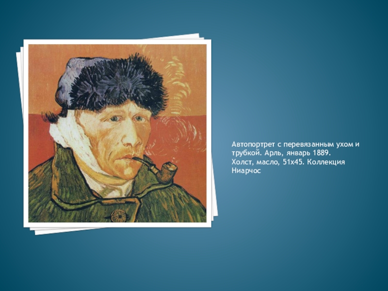 Слайд 15Автопортрет с перевязанным ухом и трубкой. Арль, январь 1889.