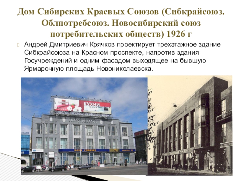 Дом Сибирских Краевых Союзов (Сибкрайсоюз. Облпотребсоюз. Новосибирский союз потребительских обществ) 1926 г