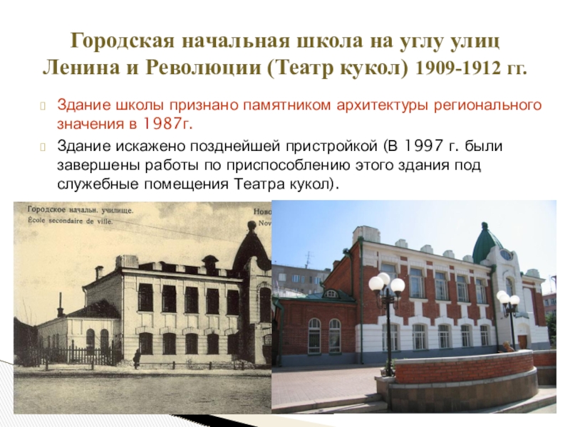 Городская начальная школа на углу улиц Ленина и Революции (Театр кукол) 1909-1912 гг.
