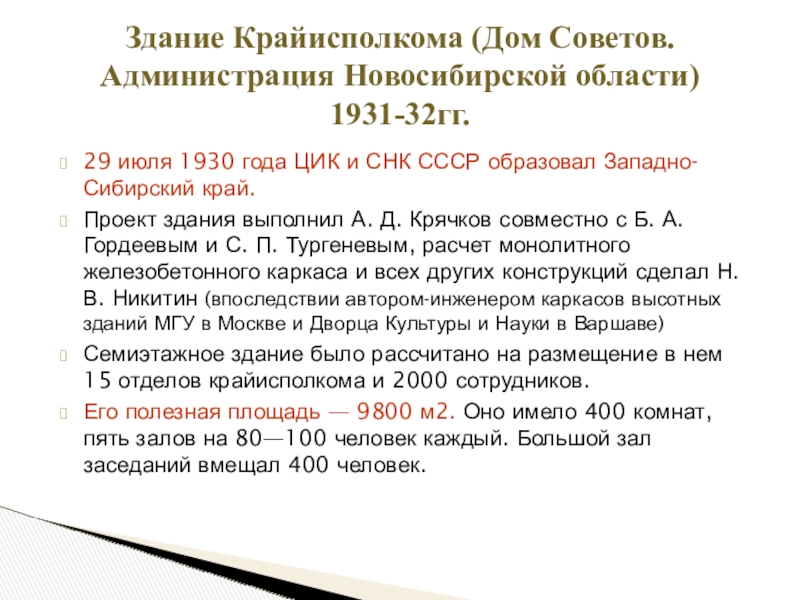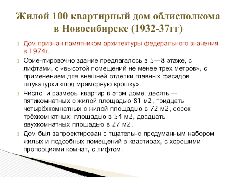 Жилой 100 квартирный дом облисполкома в Новосибирске (1932-37гг)