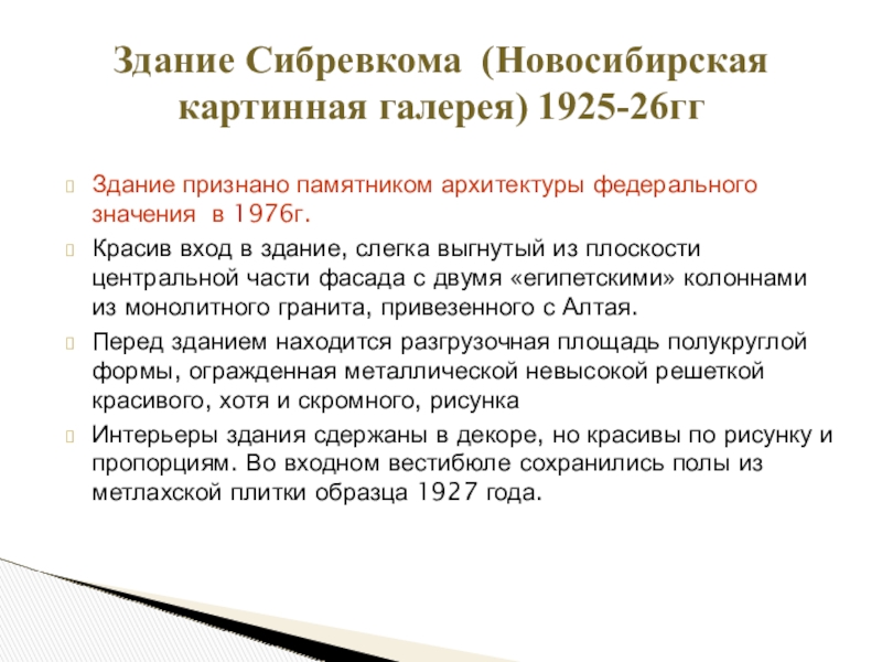 Здание Сибревкома (Новосибирская картинная галерея) 1925-26гг