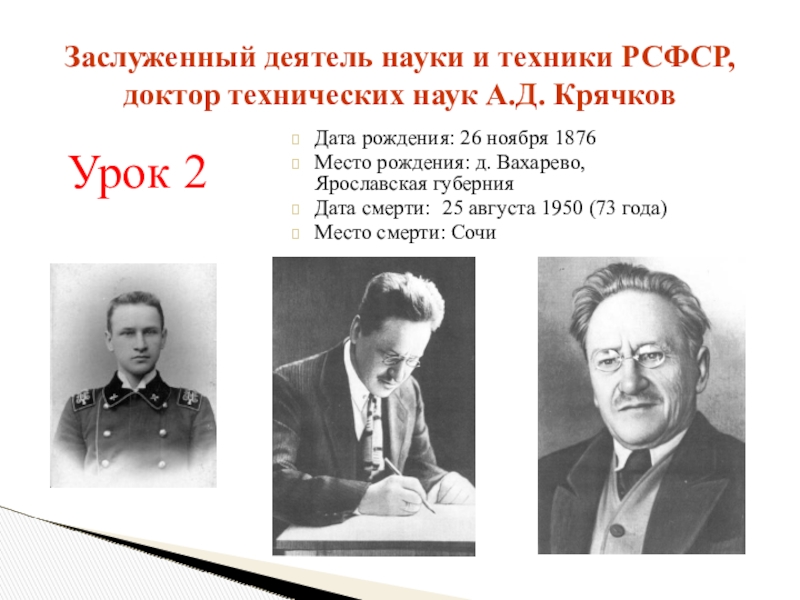Заслуженный деятель науки и техники РСФСР, доктор технических наук А.Д. Крячков