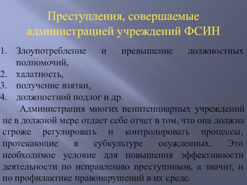 Преступления, совершаемые администрацией учреждений ФСИН