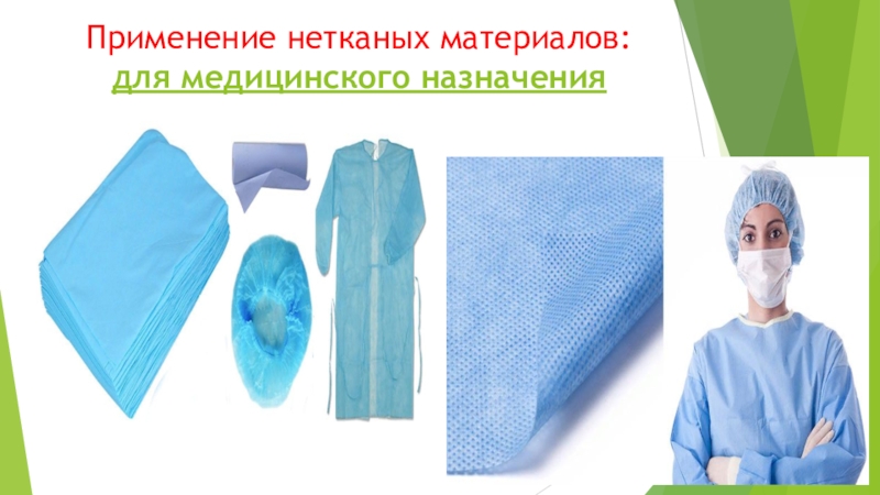 Слайд 5Применение нетканых материалов: для медицинского назначения
