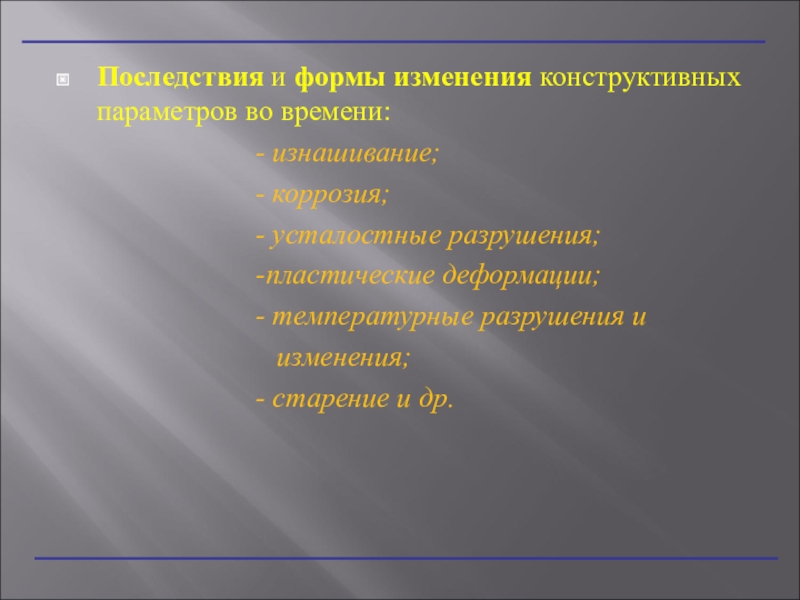 Слайд 3Последствия и формы изменения конструктивных параметров во времени: