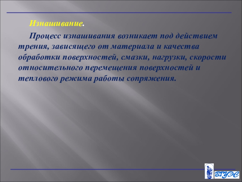 Слайд 5Изнашивание - это процесс разрушения и отделения материала с поверхности детали