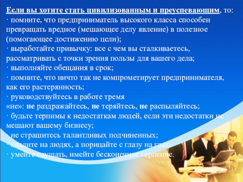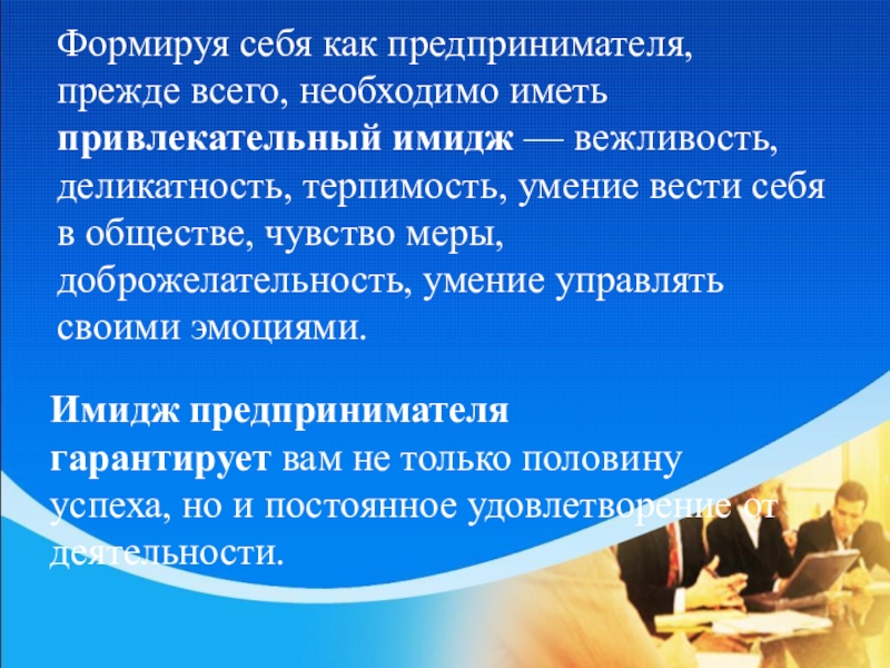 Имидж предпринимателя гарантирует вам не только половину успеха, но и постоянное удовлетворение от деятельности.