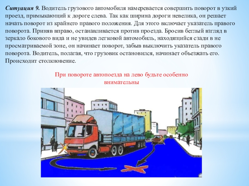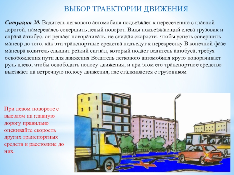 При левом повороте с выездом на главную дорогу правильно оценивайте скорость других транспортных средств и расстояние до них.