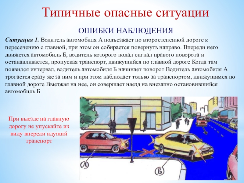 При выезде на главную дорогу не упускайте из виду впереди идущий транспорт