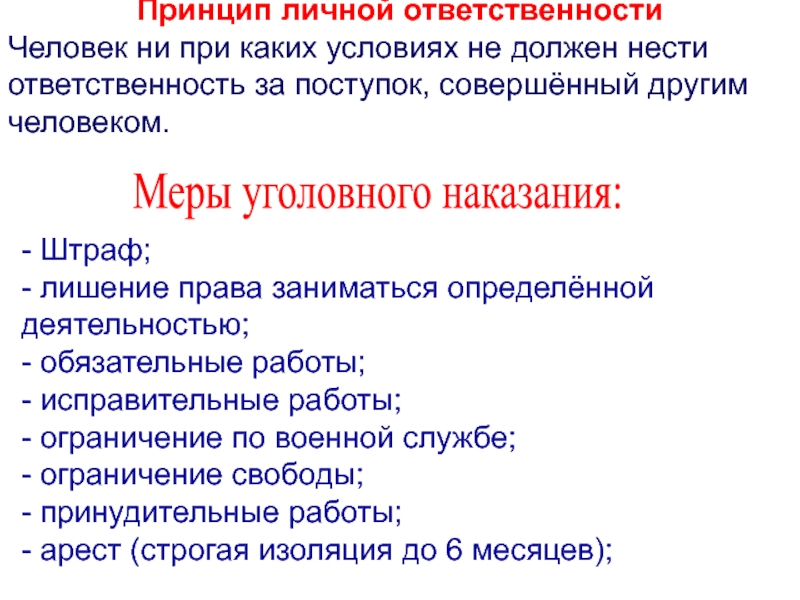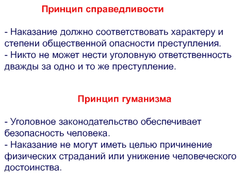 - Наказание не могут иметь целью причинение физических страданий или унижение человеческого достоинства.