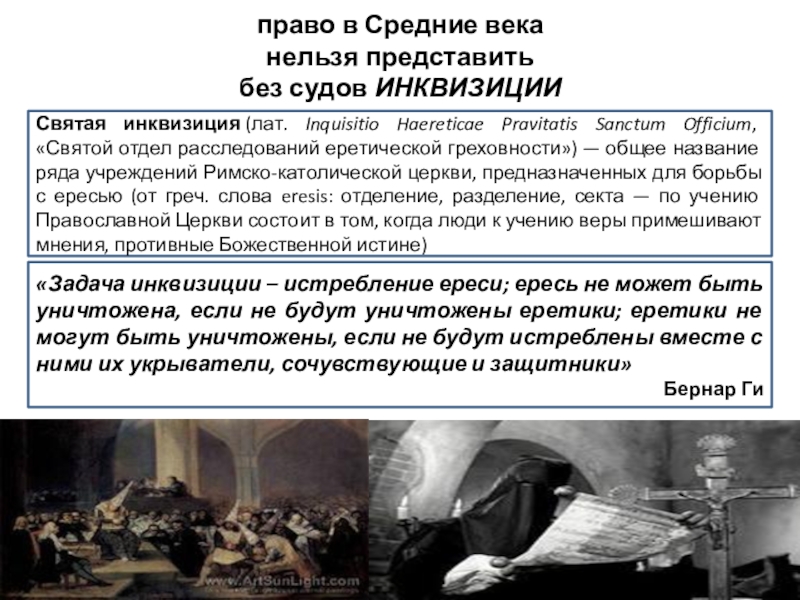 «Задача инквизиции – истребление ереси; ересь не может быть уничтожена, если не будут уничтожены еретики; еретики не могут быть уничтожены, если не будут истреблены вместе с ними их укрыватели, сочувствующие и защитники»
