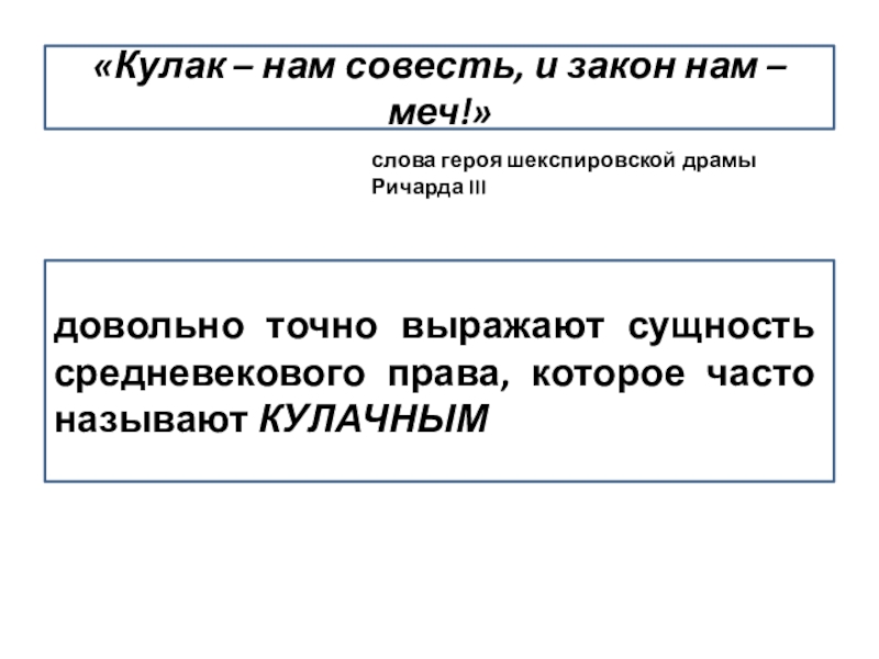 довольно точно выражают сущность средневекового права, которое часто называют КУЛАЧНЫМ
