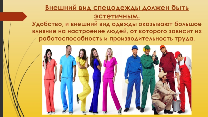 Слайд 7Внешний вид спецодежды должен быть эстетичным. Удобство, и внешний вид одежды
