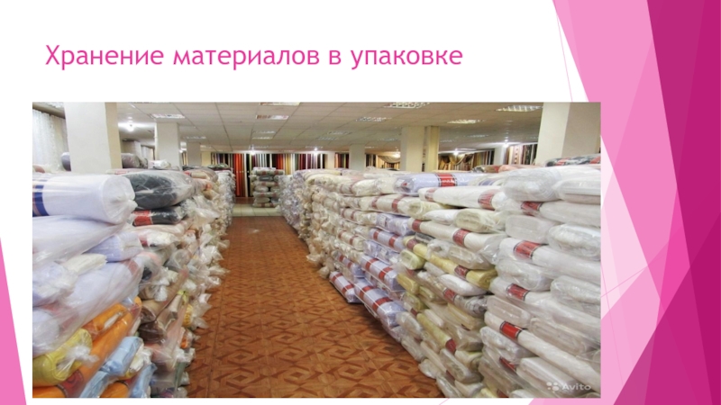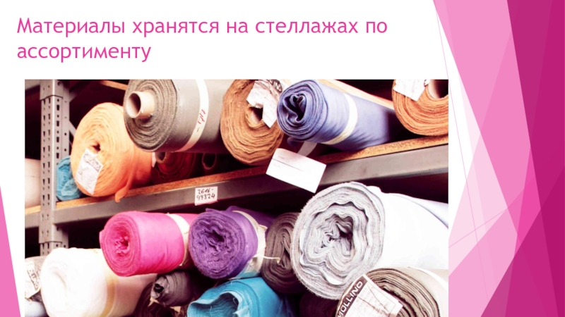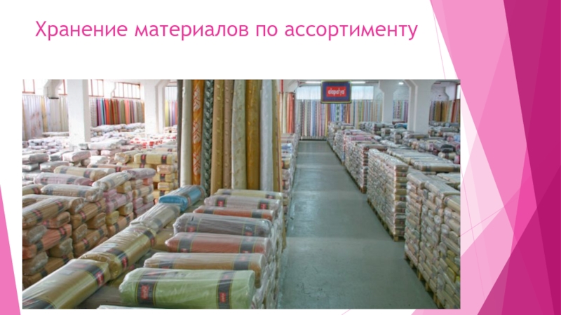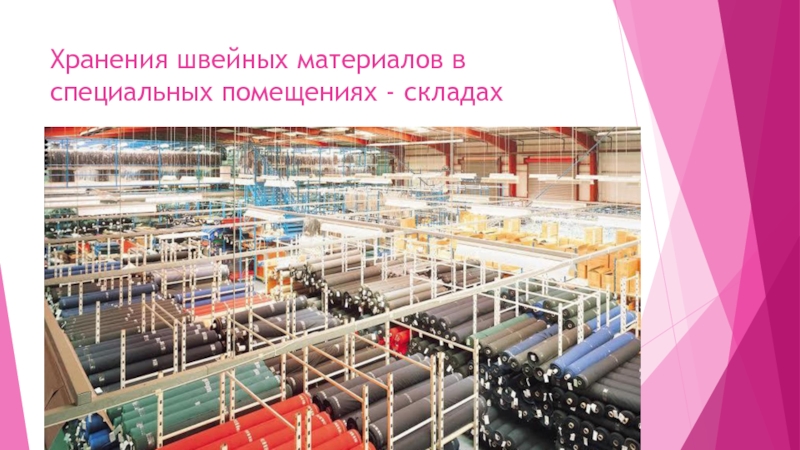 Слайд 3Хранения швейных материалов в специальных помещениях - складах