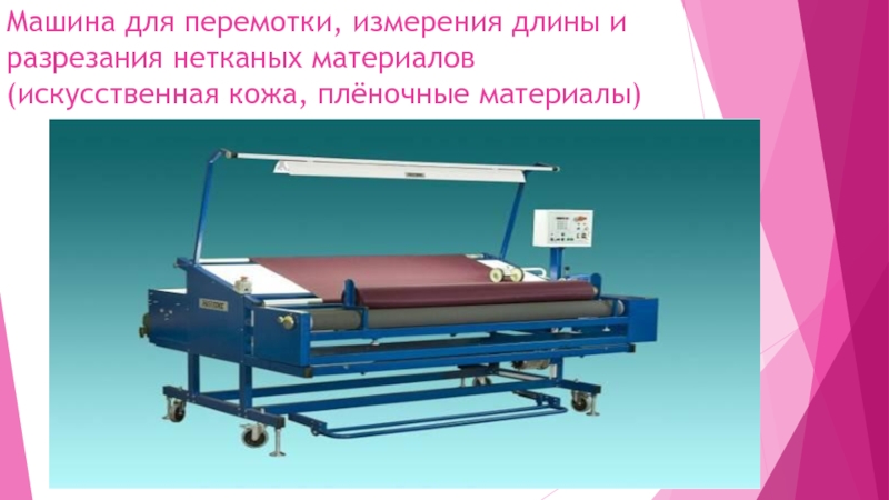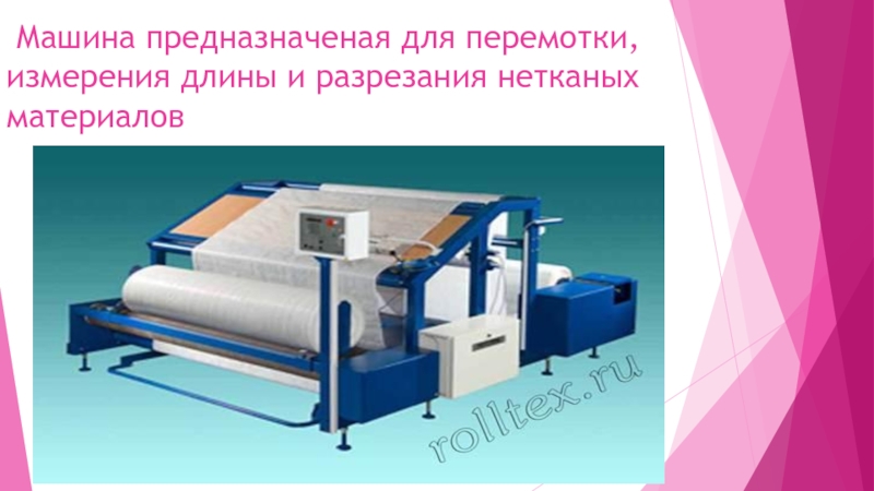 Слайд 20 Машина предназначеная для перемотки, измерения длины и разрезания нетканых материалов