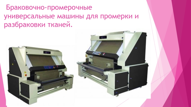 Слайд 21 Браковочно-промерочные универсальные машины для промерки и разбраковки тканей.