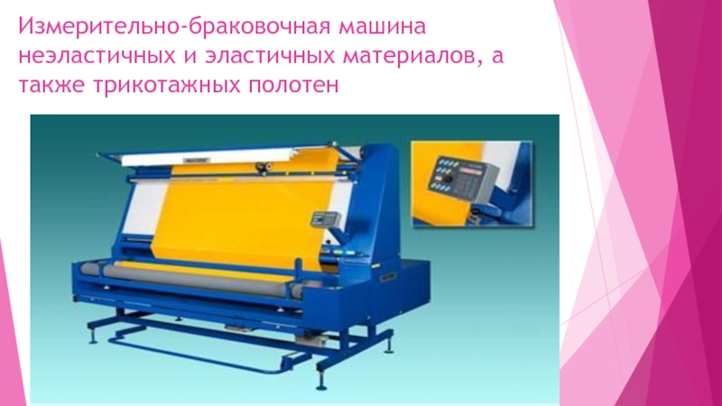 Слайд 19Измерительно-браковочная машина неэластичных и эластичных материалов, а также трикотажных полотен
