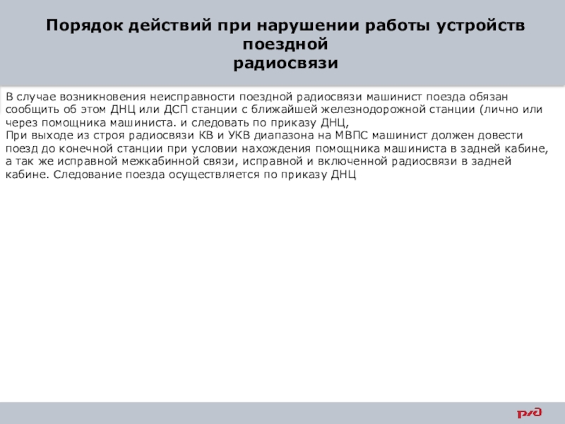 Слайд 4Порядок действий при вынужденной остановке поезда