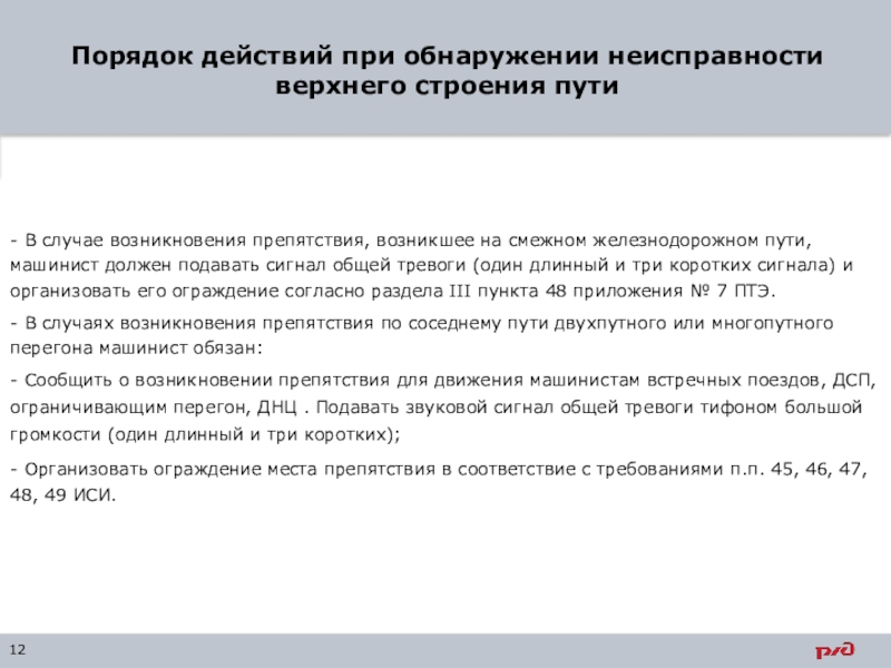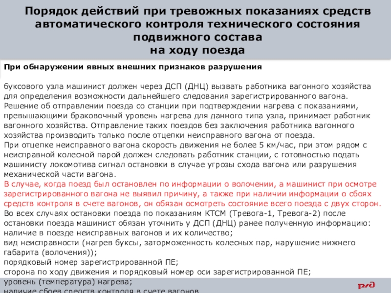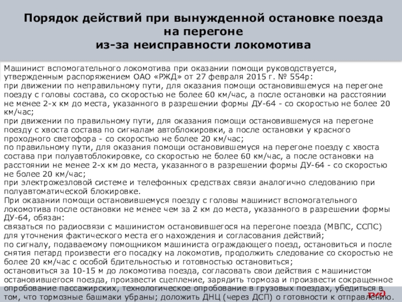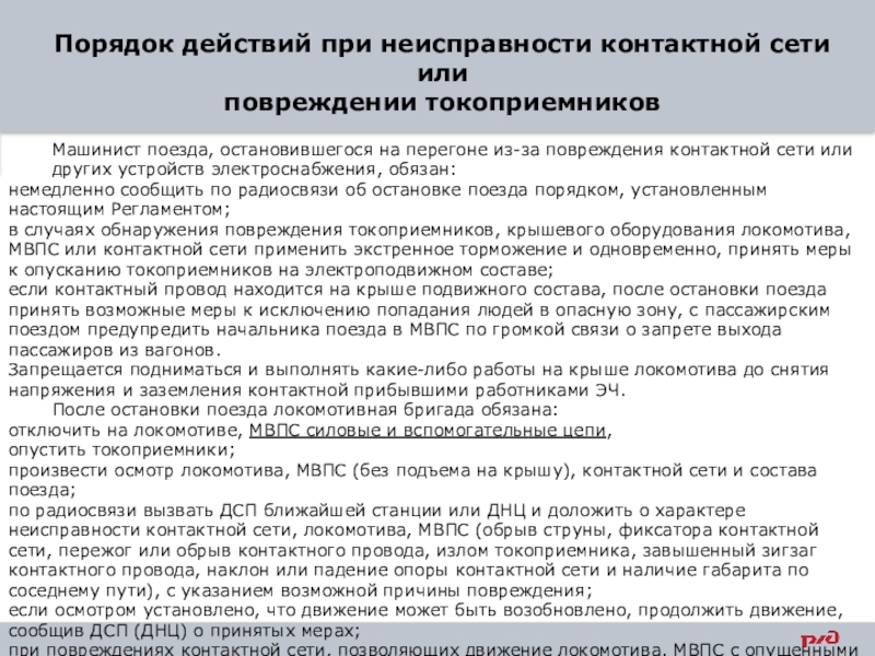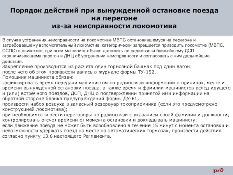 Слайд 5Порядок действий при вынужденной остановке поезда