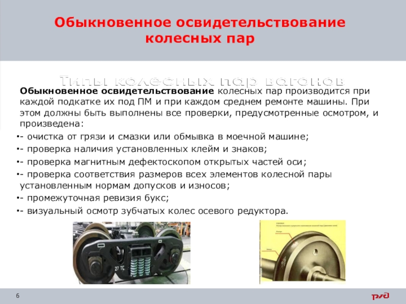 Осмотр и виды освидетельствования колесных пар путевых машин