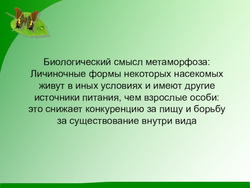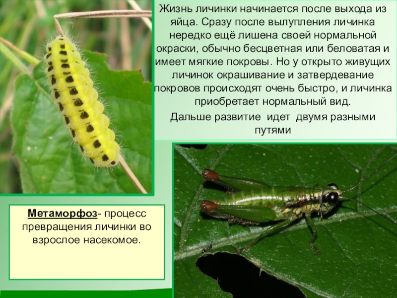 Метаморфоз- процесс превращения личинки во взрослое насекомое.