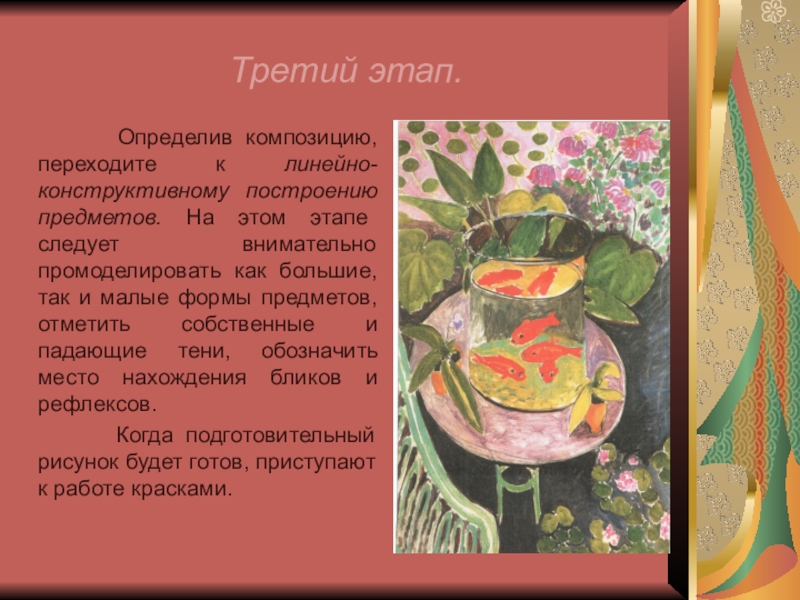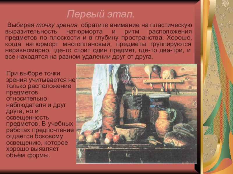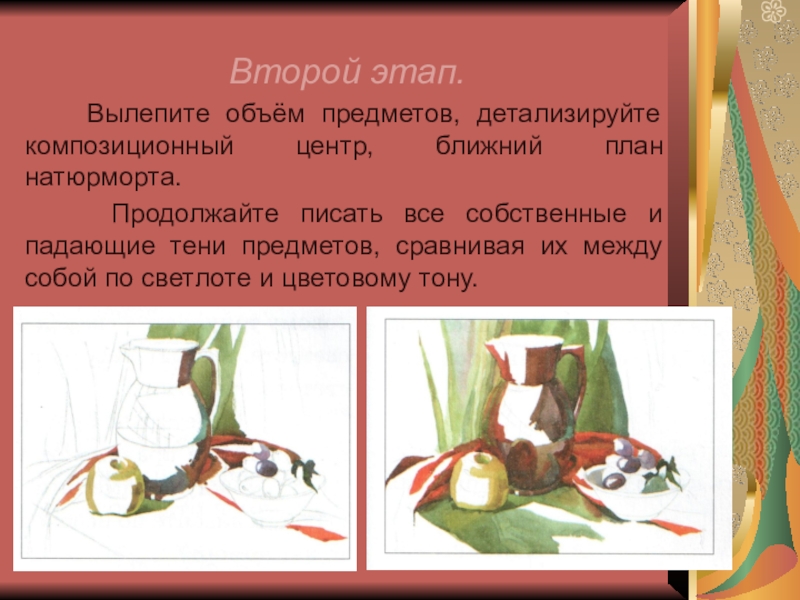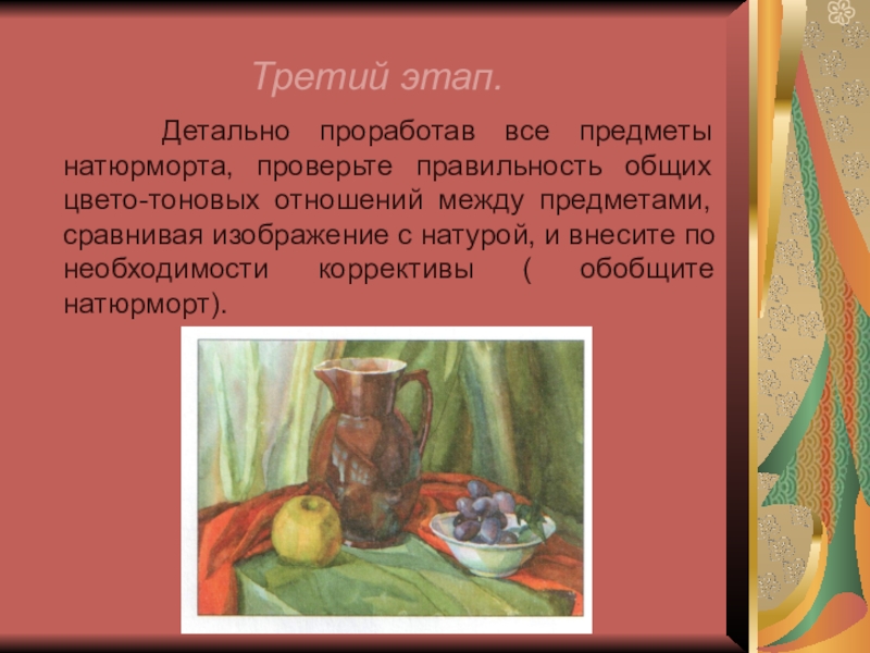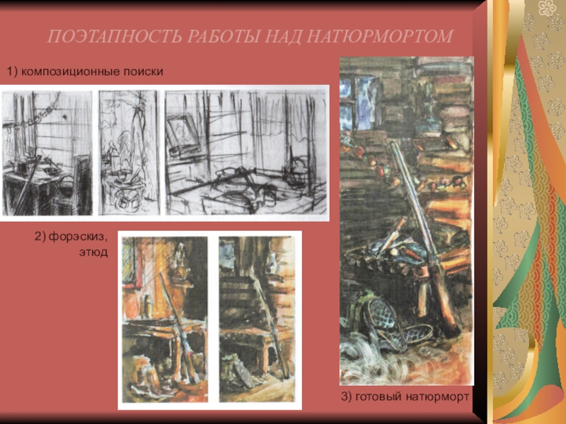 Слайд 8ПОЭТАПНОСТЬ РАБОТЫ НАД НАТЮРМОРТОМ