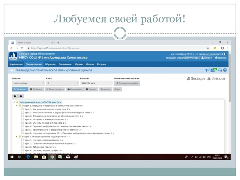 Презентация, доклад по прикреплению календарно-тематического планирования и загрузке нового в электронный журнал Сетевой город. Образование в начале нового учебного года