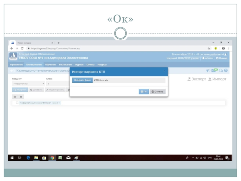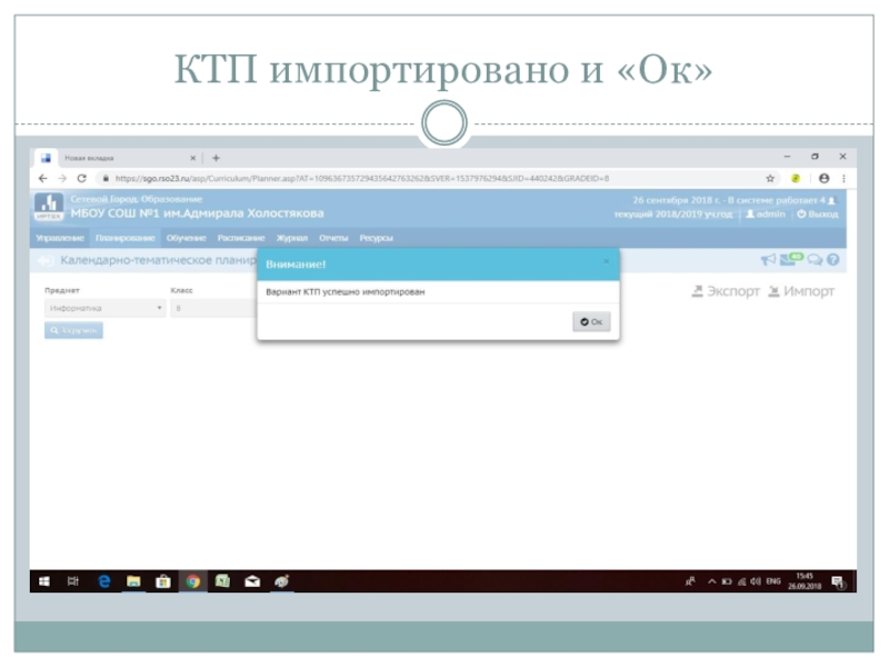 Слайд 43КТП импортировано и «Ок»
