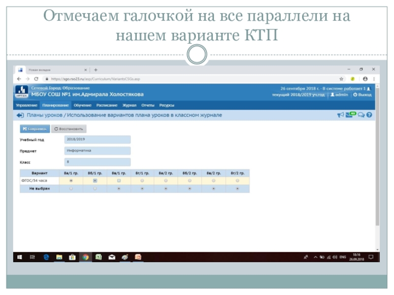 Слайд 26Если у Вас нет вариантов КТП, возвращаемся в Классный журнал