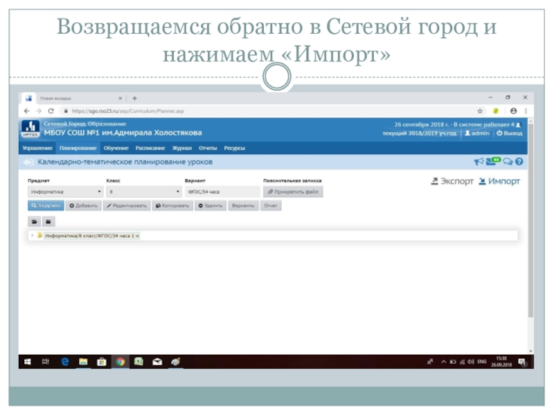 Слайд 39Возвращаемся обратно в Сетевой город и нажимаем «Импорт»