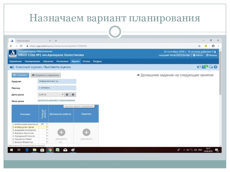 Слайд 14Нажимаем на «назначить вариант планирования»