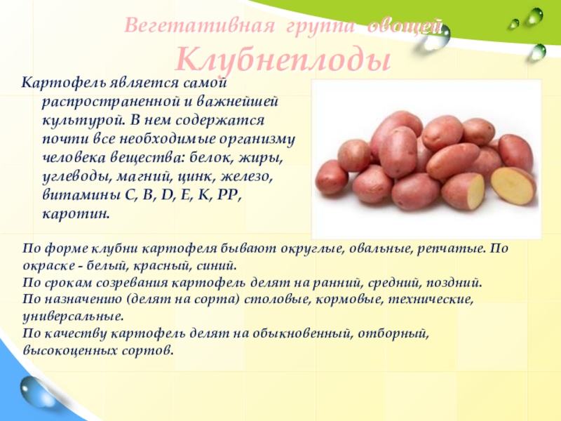 По срокам созревания картофель делят на ранний, средний, поздний.