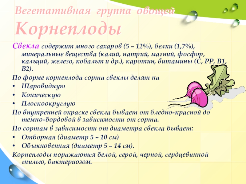 Слайд 8Вегетативная группа овощей