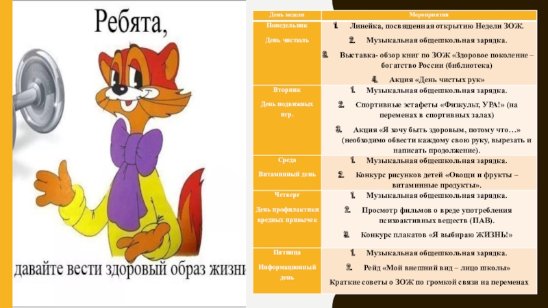 Презентация, доклад по проекту в средней общеобразовательной школе Неделя здорового образа жизни
