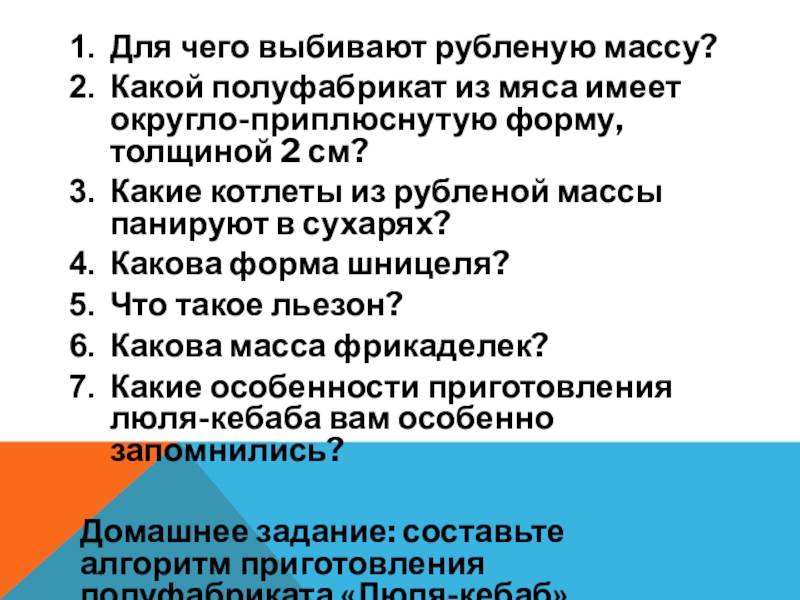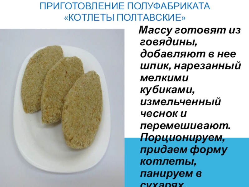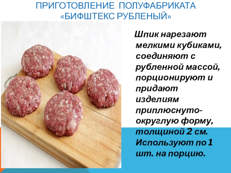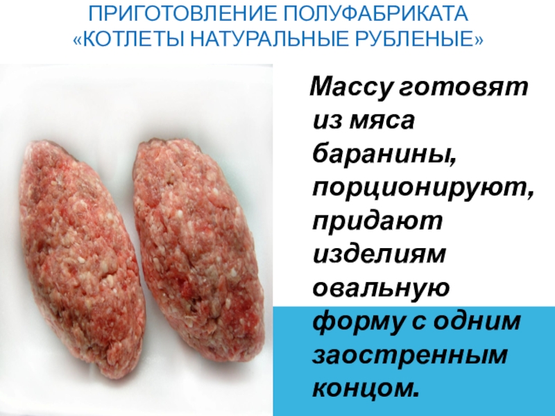 Приготовление полуфабриката «Котлеты натуральные рубленые»