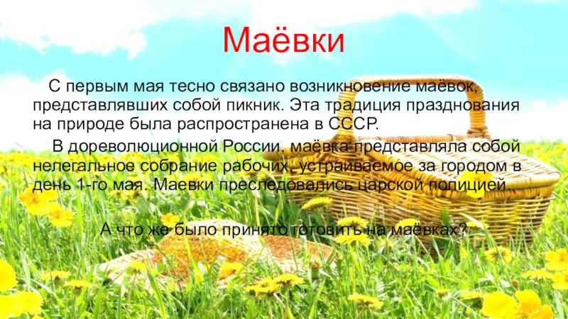 С первым мая тесно связано возникновение маёвок, представлявших собой
