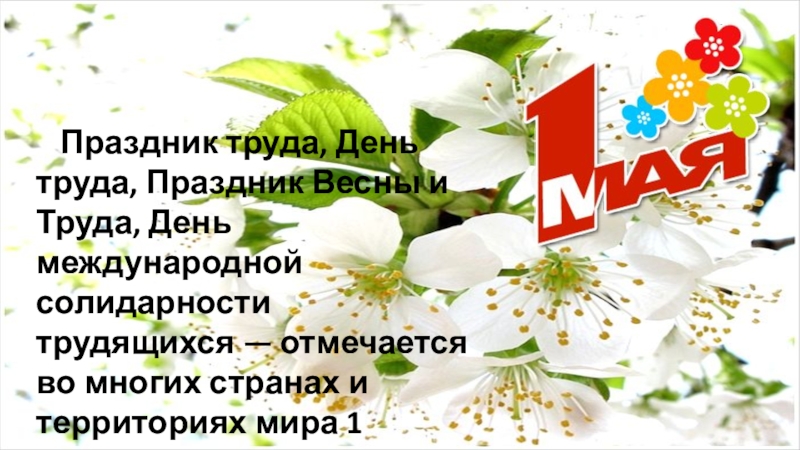 Слайд 2 Праздник труда, День труда, Праздник Весны и Труда, День международной солидарности трудящихся —