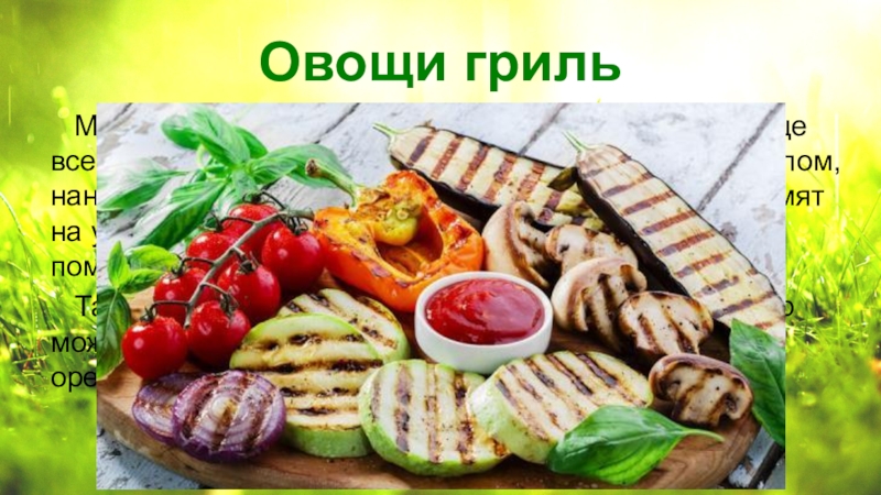 всего их просто режут, смазывают растительным маслом, нанизывают на шампуры или кладут на решётку и томят на углях. Так можно приготовить любые овощи: помидоры, баклажаны, кабачки и так далее.