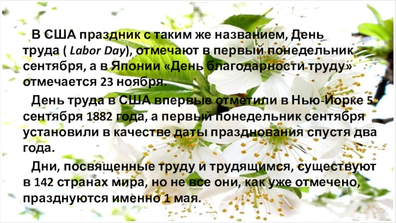 Слайд 4 В США праздник с таким же названием, День труда ( Labor