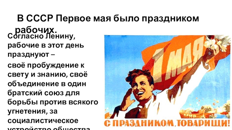 Слайд 5Согласно Ленину, рабочие в этот день празднуют –