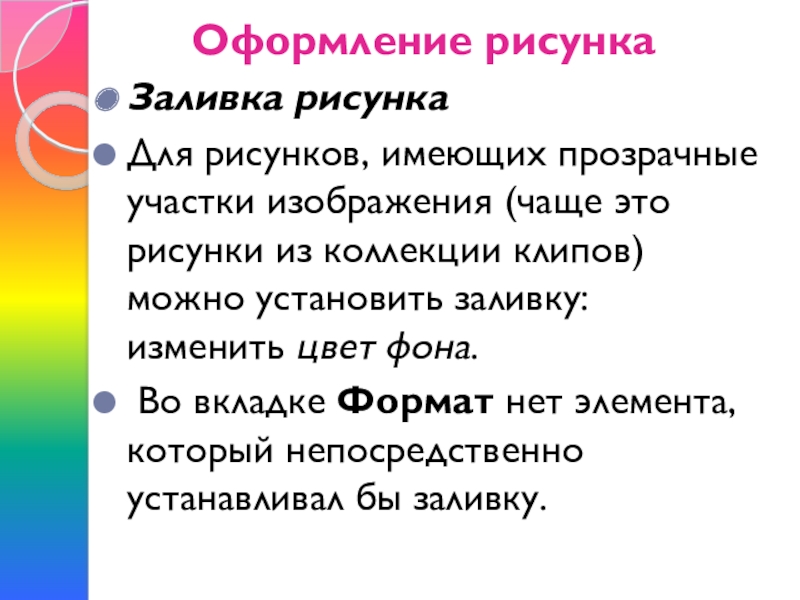 рисунки из коллекции клипов) можно установить заливку: изменить цвет фона.