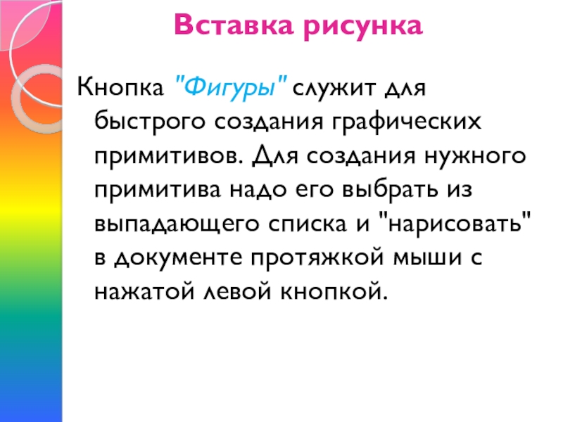 Кнопка "Фигуры" служит для быстрого создания графических примитивов. Для создания нужного