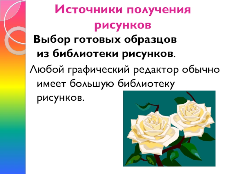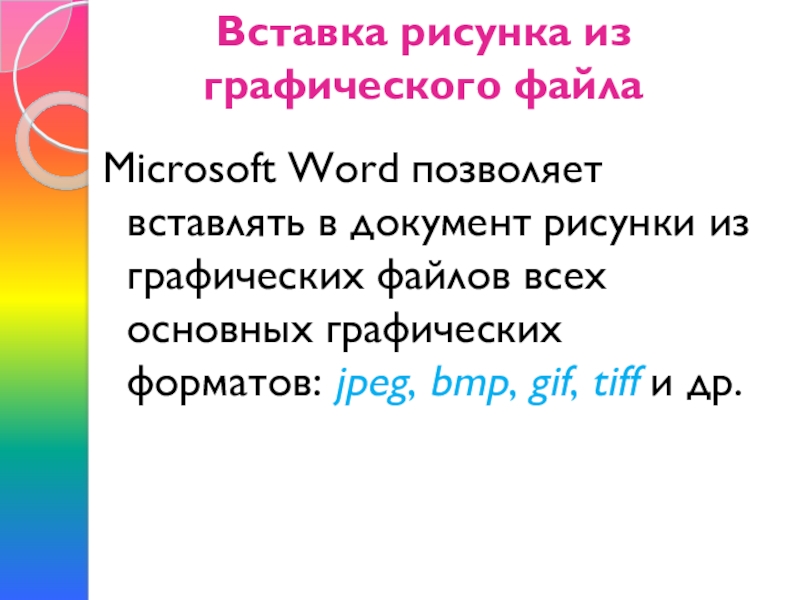 рисунки из графических файлов всех основных графических форматов: jpeg, bmp, gif, tiff и др.