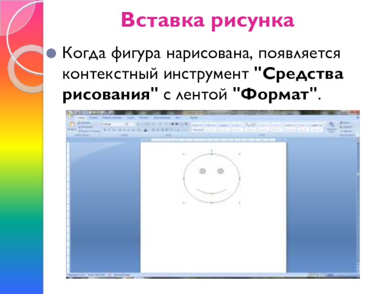 Когда фигура нарисована, появляется контекстный инструмент "Средства рисования" с лентой "Формат".